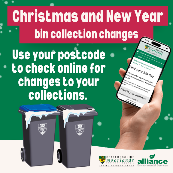Changes to waste and recycling collections in the Moorlands over the festive season are now available for residents to check online.